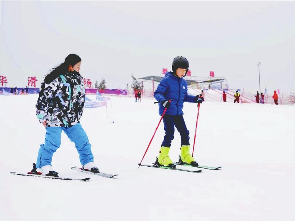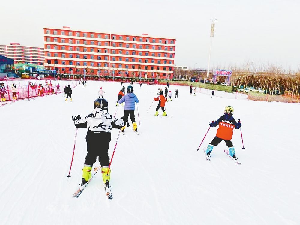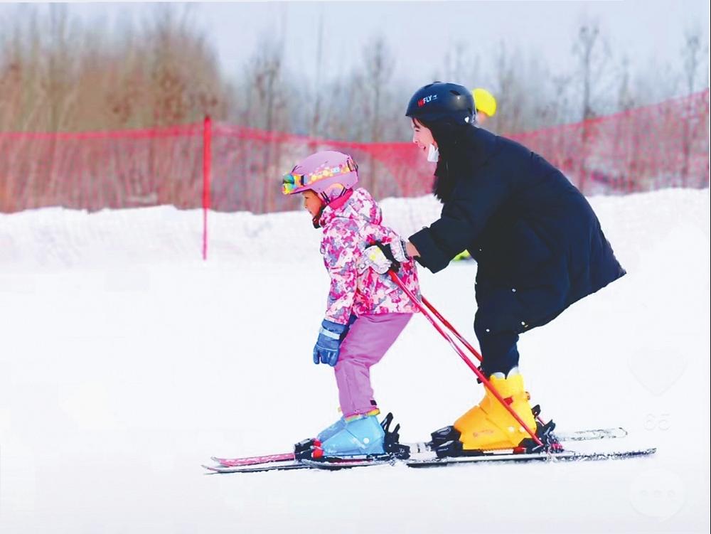 在南和區一滑雪場內,家長正與孩子在雪地游玩。隨著北京冬奧會開幕,大家對冰雪運動的熱情越來越高,不少市民帶著孩子相約滑雪場,感受冰雪運動的魅力。 (邢臺日報社全媒體記者霍紅軍 付星雨攝)