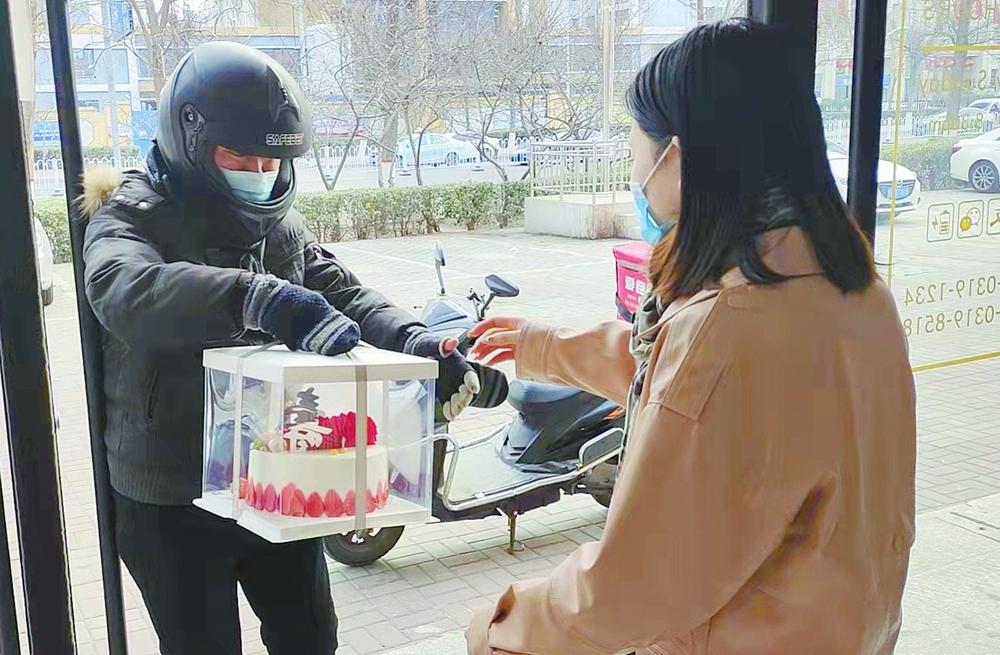 2月16日8時(shí)許,愛跑腿配送員鄭豪的手機(jī)響起,一個(gè)配送蛋糕的訂單來了。鄭豪戴上頭盔,騎上電摩,開始了一天的忙碌。