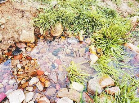 目前,這里已經形成一片東西長約200米,南北寬50米的濕地。令人不可思議的是,濕地里面的野草一片翠綠。而河道其它地方,則全是砂石和極少量干枯的雜草。采訪中,記者在濕地最大水面處,不時看到白鷺等野鳥飛舞。