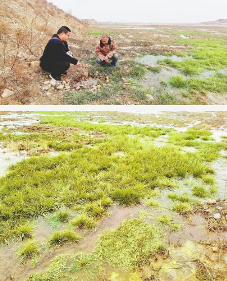 郭志田在去年冬天的一場雪后,偶然發現這里的與眾不同。他說,當時從橋頭上看到白茫茫的河道里,唯有這一片不僅沒有積雪,貌似還有綠色。大年初二,一直覺得好奇的郭志田,來到河床。眼前的泉水和綠草,頓時讓他驚呆!