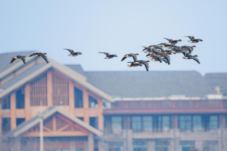 寒冬杳然去,春色滿邢襄。2月26日,南飛的大雁帶著春天的氣息回來了,在內丘縣馬河水庫,幾十只大雁成群結隊,伴隨著春風在湖面和濕地上飛舞、歇息、覓食,構成了一幅幅早春時節的唯美畫卷。