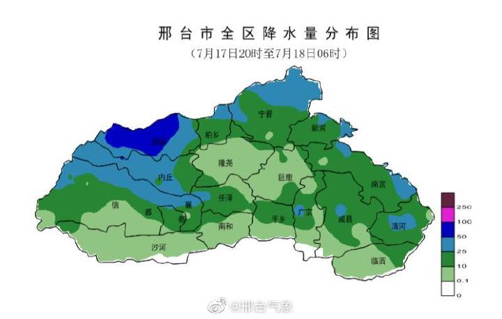 邢臺市氣象臺7月18日06時發(fā)布天氣實況和預(yù)報信息:16日20時~18日06時,全市平均降雨量29.4毫米,50毫米以上47站出現(xiàn)在信都區(qū)、臨城、內(nèi)丘、沙河、寧晉,100毫米以上出現(xiàn)在臨城屯院107.3毫米、官都村105.9毫米、閆家莊105.5毫米,最大小時雨量臨城官都村45毫米(18日02:00~03:00),市氣象局50.8毫米。17日20時~18日06時,全市平均降雨量18.6毫米,25毫米以上76站,50毫米以上15站出現(xiàn)在臨城、內(nèi)丘,最大降雨量臨城官都村72.3毫米,最大小時雨量臨城官都村45毫米(18日02:00~03:00),市氣象局24毫米。預(yù)計未來3小時我市西北部地區(qū)有分散性陣雨(平均降雨量5毫米以下,局地10~20毫米)。