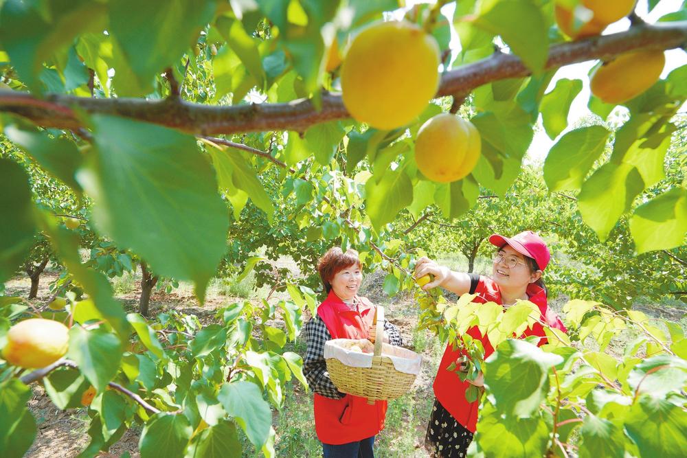 5月24日,內丘縣黨員志愿者在云翔果品基地幫助果農采摘甜杏。