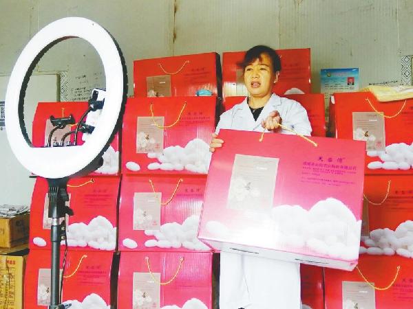 回鄉(xiāng)以來,趙愛民多次創(chuàng)新發(fā)展模式:桑葚深加工做成桑葚茶,蠶蛹制造特色美食,引進(jìn)抽絲機(jī)制作蠶絲被,網(wǎng)絡(luò)直播促銷售……