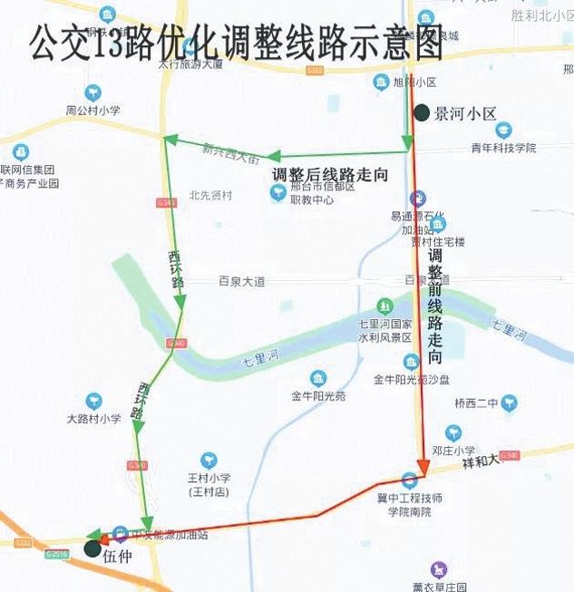 調整后,取消濱江新興街口、賈村、濱江路七里河橋北、市一中西站、匯源考試場、鄧莊、西北留、前后留東站、前后留、王村東站、王村站點;增加金興藥廠、通利公司、東先賢、信都區職教中心、北先賢、大路村站點。(邢臺日報社全媒體記者 劉曉燕)