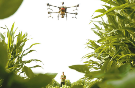 8月5日,在南和區閻里鄉一家農民合作社,農民操作植保無人機為玉米和大豆噴灑農藥、葉面肥。