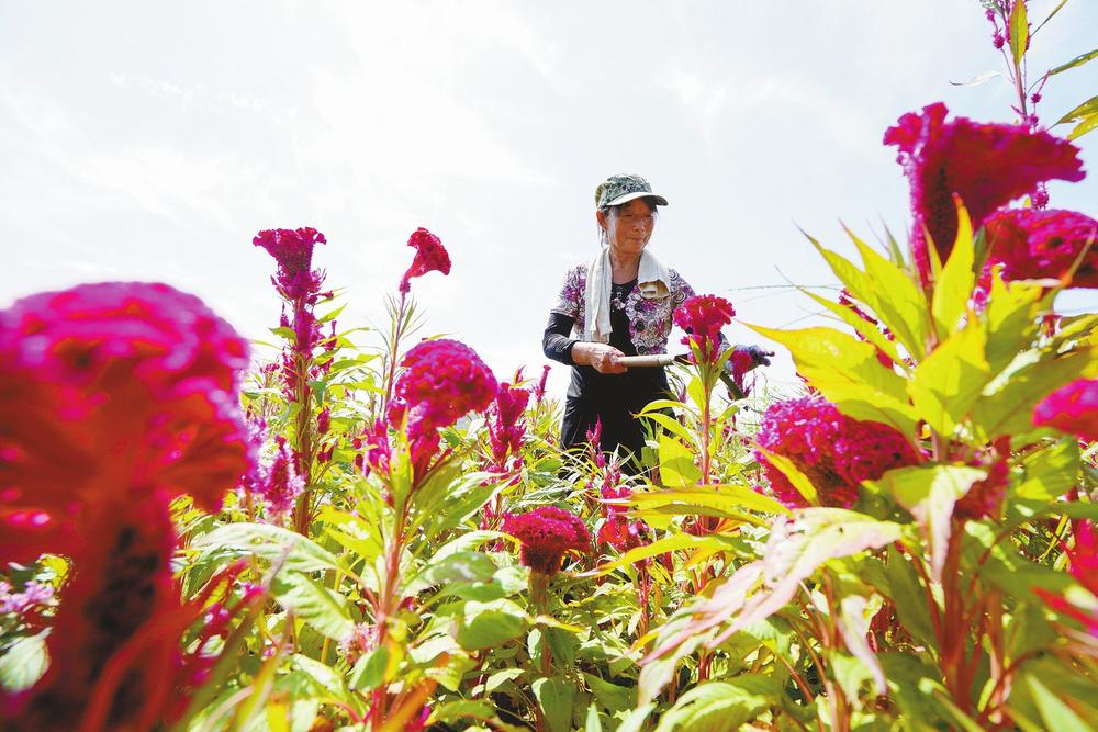 近日,內丘縣扁鵲藥谷中藥材種植基地的雞冠花迎來豐收季,農民抓緊時間采收、晾曬,供應市場。