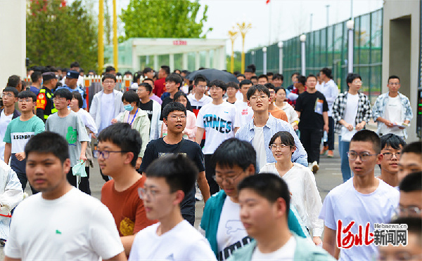 6月7日上午,高考第一場語文科目考試結束后,考生走出考點。河北日報記者 趙永輝 攝