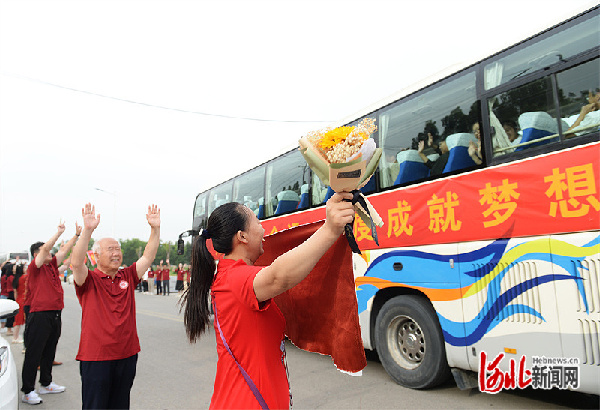 6月7日早晨,河北省南宮市豐翼中學老師和家長為考生送考。河北日報記者 趙永輝 攝