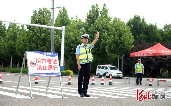 6月7日,在河北南宮中學考點外,公安交警在路口執勤。河北日報記者 趙永輝 攝