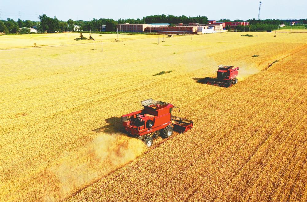 6月9日,收割機在威縣侯貫鎮后王村麥田開展夏收作業(無人機照片)。眼下,河北省3377.1萬畝小麥麥收工作由南至北陸續展開,各地農民搶抓農時,利用晴好天氣搶收小麥,確保顆粒歸倉。據農情調查顯示,河北省小麥長勢良好,呈現豐收態勢。