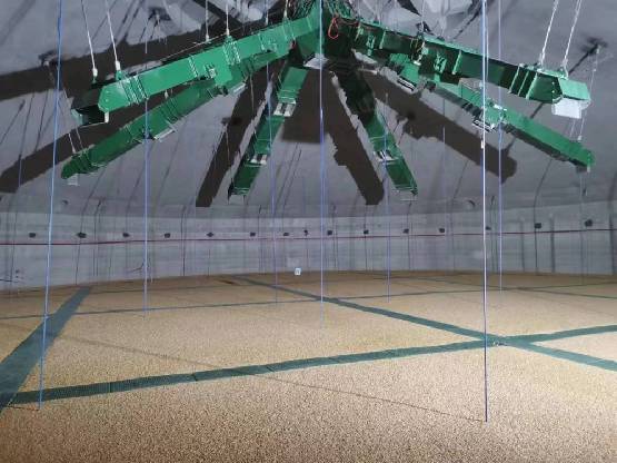 中央儲備糧秦皇島直屬庫有限公司海港糧食儲備基地,糧倉內的智能化通風設備為糧食提供安全保障。(新華社記者 郭雅茹攝)