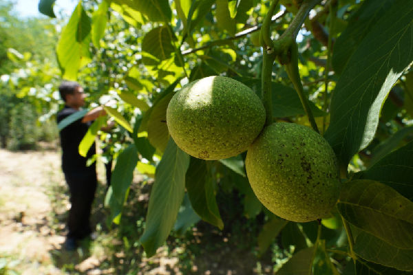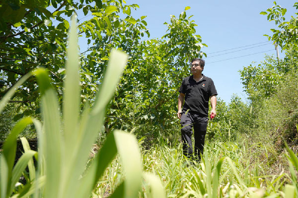 ↑6月30日,賈志華在河北省臨城縣賈莊村管理種植的核桃。