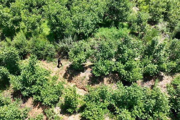 ↑6月30日,賈志華在河北省臨城縣賈莊村查看核桃長(zhǎng)勢(shì)(無(wú)人機(jī)照片)。
