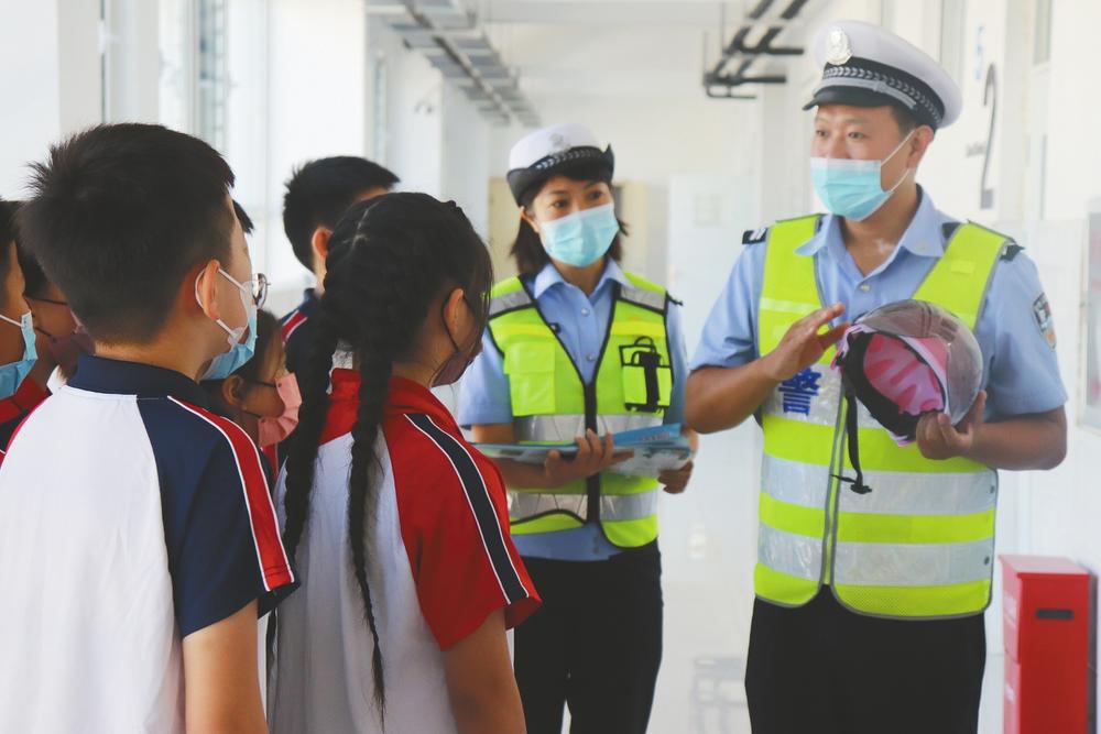 為進一步提高轄區中小學生暑假期間交通安全意識,連日來,市級文明單位邢臺交警支隊組織全系統民警走進中小學校、幼兒園等開展暑假校外道路交通安全知識宣講活動。圖為寧晉縣公安交警大隊民警走進校園開展安全宣傳。