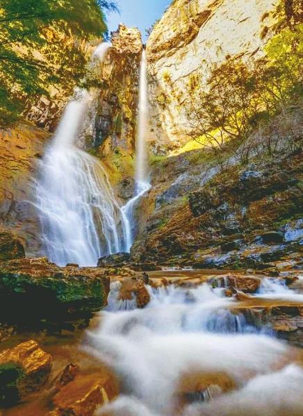 棲鷹瀑位于信都區云夢山景區,從冀家村鄉石板房村河溝一直西行,便可抵達。遠遠望去,棲鷹瀑像一只巨大的山鷹,翱翔歸來,兩旁山壁似沒有收攏的翅膀,中間一塊多棱石頭像目光灼灼的鷹頭俯瞰下方。瀑布落差達105米,兩條白龍溪自鷹頭兩旁直瀉而下,偶有撞至斜壁,濺起顆顆碎玉,飛起層層白霧,飄飄灑灑,氣勢宏大。