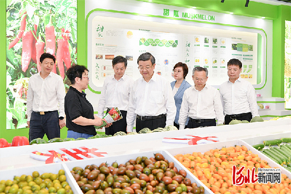 7月20日,省委書記、省人大常委會主任倪岳峰在京津冀蔬菜科技測評示范中心調研。 河北日報記者趙海江攝