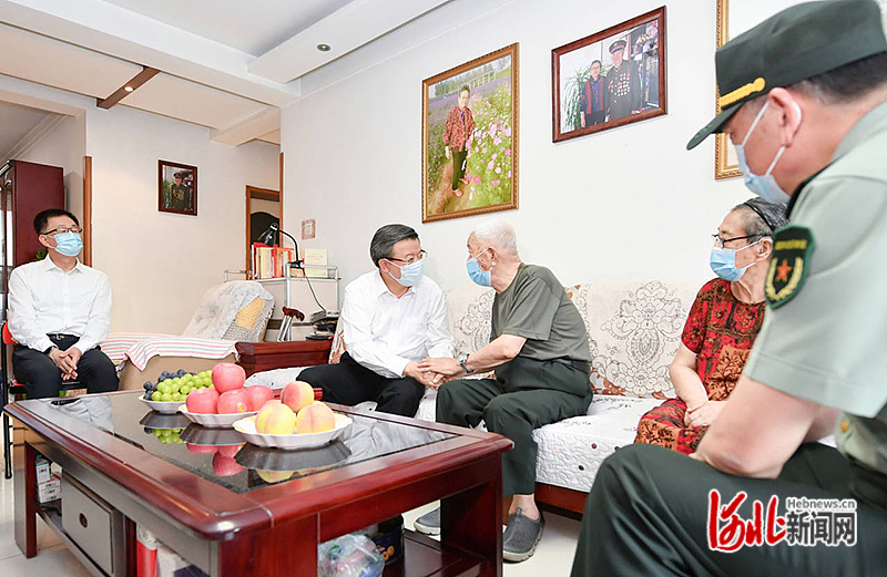 7月28日,省委書記、省軍區黨委第一書記倪岳峰到家中慰問曾參加過解放戰爭、抗美援朝戰爭的89歲離退休干部林惠志。 河北日報記者趙海江攝
