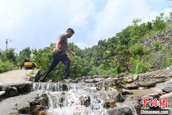 8月10日,郝立杰在村內存在安全隱患的區域進行巡查。 中新社記者 翟羽佳 攝