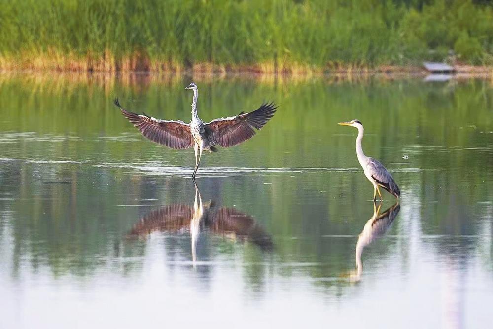 在寧晉縣鳳鳴湖畔,湖面清波蕩漾、蘆葦搖曳,一群群鳥兒時(shí)而在空中翻飛,時(shí)而停下覓食。隨著生態(tài)環(huán)境的改善,這些年,大批遷徙的候鳥將此作為了中轉(zhuǎn)棲息地。站在鳳鳴湖岸邊向遠(yuǎn)眺望,鷺鳴鳧舞、百鳥齊飛,景致之美,超出想象。