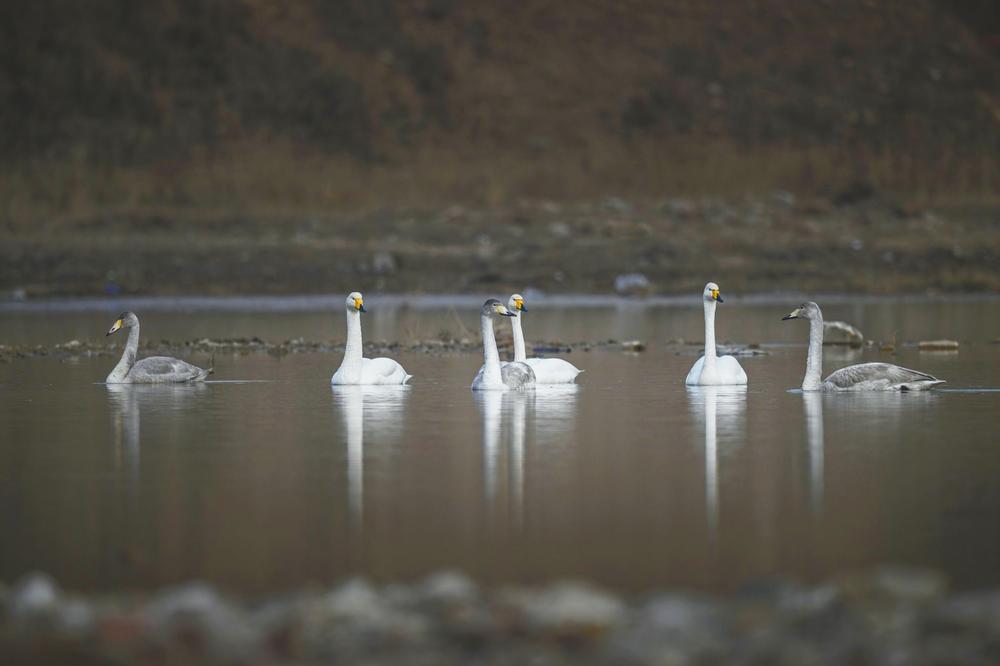 12月4日,在信都區南青山村村北白馬河,天鵝在水中嬉戲、覓食,為冬日的白馬河增添了盎然生機。近年來,隨著白馬河生態環境的持續改善,每年冬季都會吸引各類候鳥來這里棲息。 (邢臺新聞傳媒中心記者 霍紅軍 攝)