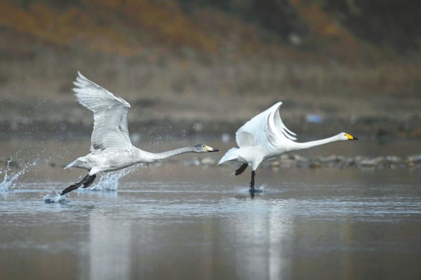 白馬河上天鵝翩躚