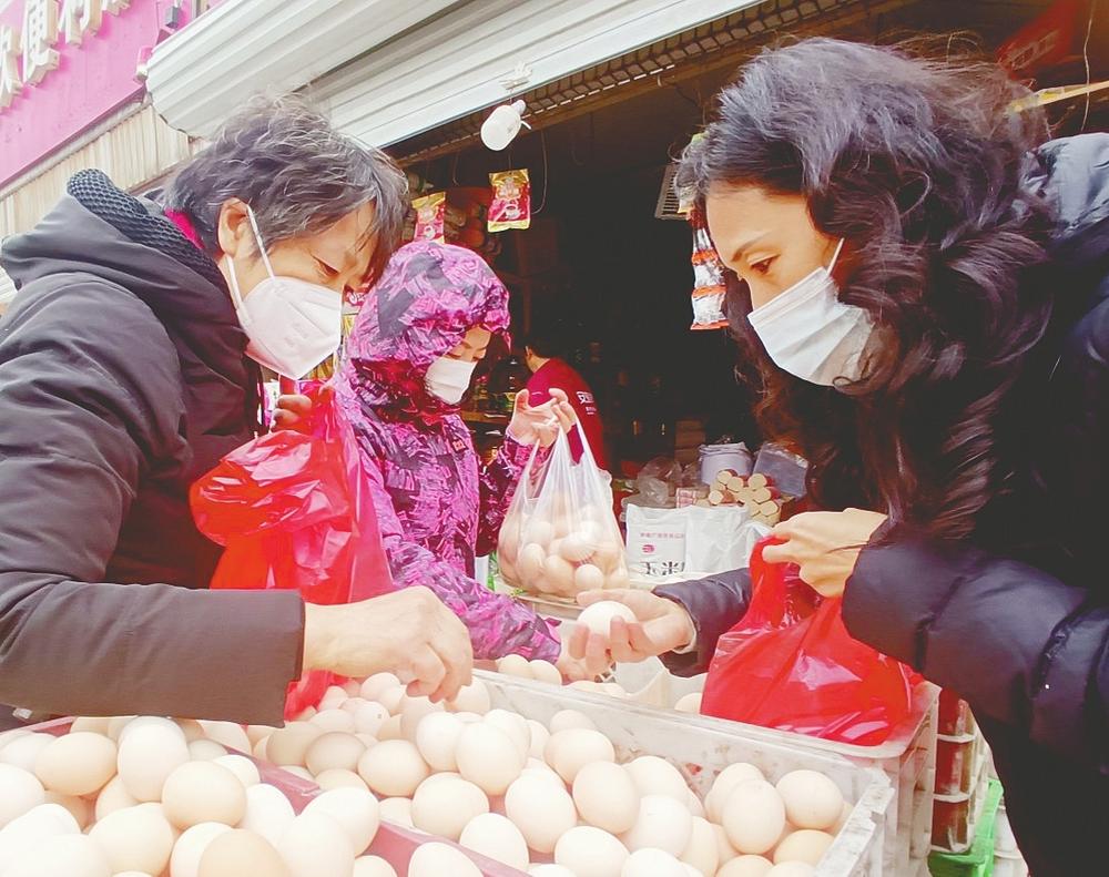 12月9日,市民在襄都區一農貿蔬菜門市選購農副產品。據市氣象局提醒:近日,我市受強冷空氣影響,將迎來斷崖式降溫,記者走訪市區多個商超農副產品門市發現蔬菜、肉、蛋、奶等農副產品備貨充足,足夠保證市場供應。