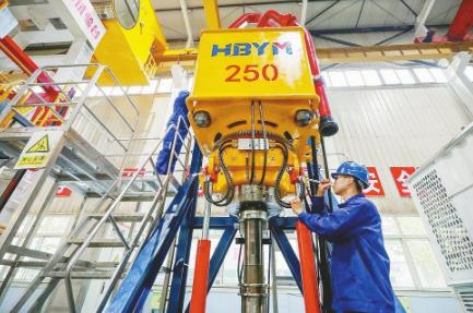 任澤區一家工程機械有限公司的工人正在組裝、調試鉆探設備。