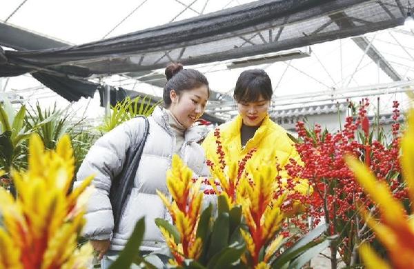 ①2023年12月30日,市民在襄都區(qū)一家花卉市場選購鮮花。當日是元旦假期第一天,人們休閑放松,樂享假日。新華社發(fā)張馳攝
