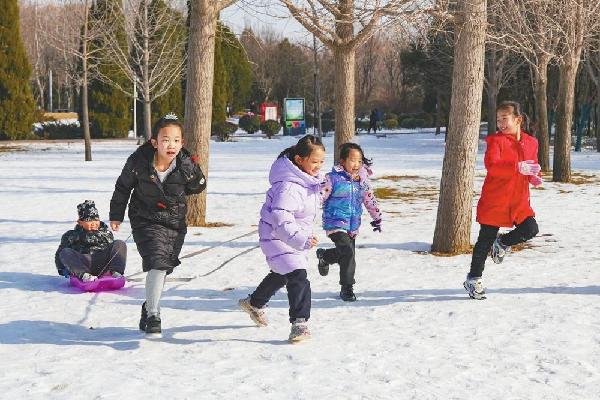 ③2023年12月31日,在我市達活泉公園,一塊綠地因積雪形成了天然冰雪樂園,孩子們通過坐雪圈、玩雪板盡享雪地活動帶來的歡樂,白茫茫的雪地樂園到處洋溢著歡聲笑語。 本報記者霍紅軍攝