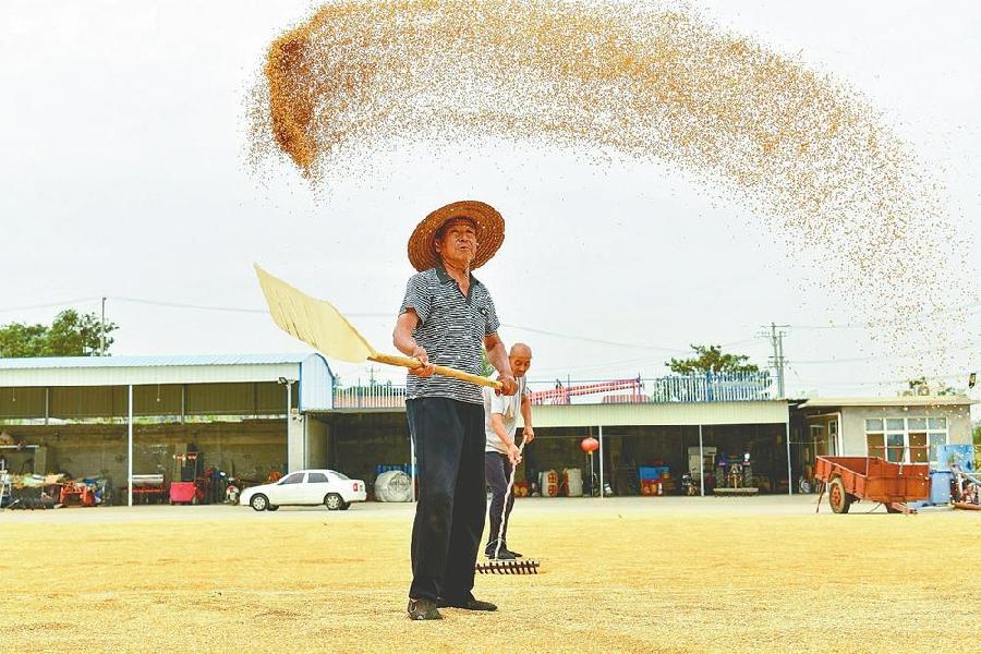 日前,信都區(qū)3.95萬畝小麥?zhǔn)崭罟ぷ鹘咏猜暎r(nóng)戶搶抓晴好天氣,對已收獲的小麥進行晾曬,確保顆粒歸倉。