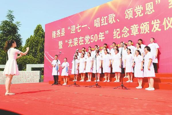 6月28日,隆堯縣舉辦“迎七一、唱紅歌、頌黨恩”活動。10支紅歌表演隊伍,依次登場。以嘹亮的歌聲、澎湃的氣勢,歌唱傳統革命紅色歌曲,迎接黨的生日。