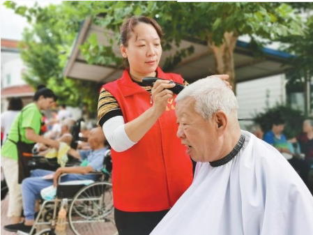 7月31日,市義工協會組織志愿者走進市紅十字醫院醫養中心,為退役老兵理發、修腳,并表演文藝節目。