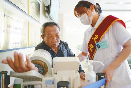 8月6日,一位老人在邢臺市中心醫院“敬老愛心驛站”測血壓。近日,市老干部局依托戶外勞動者驛站、公共醫療場所及現有社會公共場地資源,采取單位聯建、資源共享、融入敬老元素等方式,創建了16個“敬老愛心驛站”。每個“敬老愛心驛站”都配置了書報架、桌凳、充電寶等設施,根據實際情況還增加了測血壓、借用輪椅、文藝培訓等項目,以此增強社會尊老、敬老、愛老、助老的意識,讓老年人安享幸福安康的晚年生活。 (新華社發邢臺新聞傳媒中心記者陳雷攝)