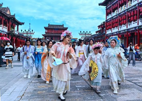 “老街的旅游發(fā)展起來了,古裝旅拍深受青睞,店里生意也跟著紅火起來!”老板劉華川一邊整理著新上架的漢服,一邊說,“每天差不多能出租20來套,節(jié)假日、雙休日更多,有時(shí)候衣服和飾品還供不應(yīng)求呢。現(xiàn)在,正合計(jì)著再增加些漢服款式,為即將到來的國慶假期做準(zhǔn)備。”