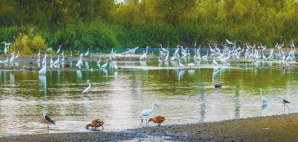 近日,白鷺、夜鷺、池鷺、蒼鷺等千余只野生水鳥紛紛翔集京港澳高速跨泜河大橋兩側(cè),或追逐嬉戲、翩翩起舞,或佇立凝望、覓食休憩,或凌空飛翔、鳴叫如歌……給初秋里的泜河增添了一道靈動(dòng)、迷人的風(fēng)景。 近年來,我市堅(jiān)持生態(tài)優(yōu)先、綠色發(fā)展,生態(tài)環(huán)境不斷改善,河、湖、濕地等水域吸引了大批鳥兒前來?xiàng)⒎毖堋! ”緢?bào)記者霍紅軍通訊員王金戈攝