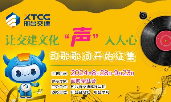 “一起來為市交建集團(tuán)寫首歌吧,讓交建文化‘聲’入人心……”8月28日起,邢臺市交通建設(shè)集團(tuán)面向全社會發(fā)布司歌歌詞征集令,邀請大家用歌詞描繪交建宏圖、用音樂詮釋交建精神。