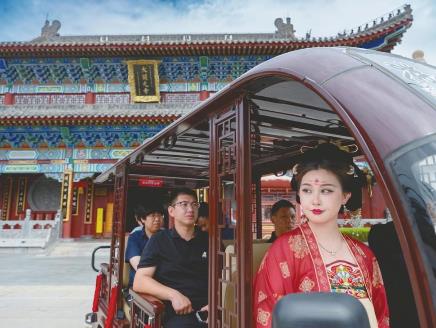 近日,市文化旅游發展集團有限公司工作人員身著靚麗的古風服飾,陪同外地游客乘坐觀光車游覽邢州古城開元寺。 據悉,今年“十一”期間,“盛裝講解”將是邢州古城游覽的亮點之一,古城旅游觀光車也將正式投放運營。 本報記者霍紅軍通訊員 陳建宇攝