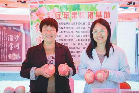 ①果農(nóng)在沙河市農(nóng)產(chǎn)品發(fā)布推介會上展示豐收的蘋果。 本報記者 黃濤通訊員 高儒森攝