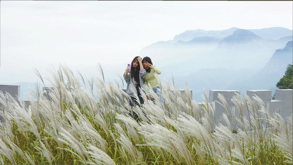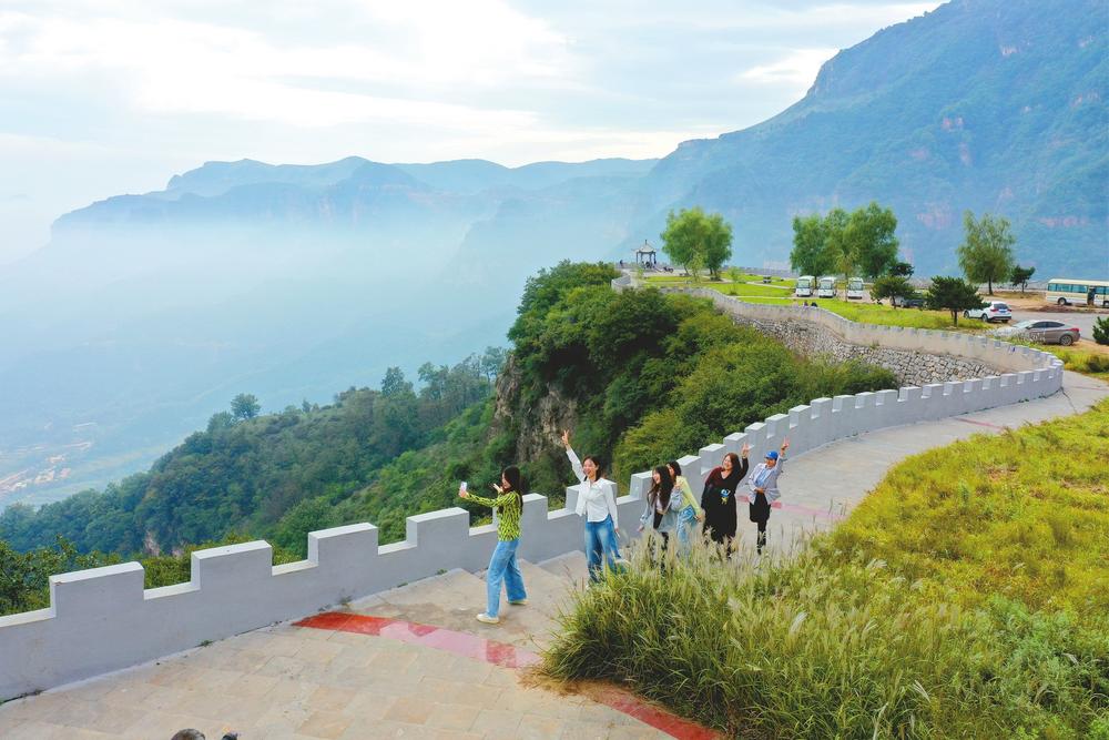 9月25日,游客在信都區路羅鎮邢臺大峽谷景區山頂平臺和路羅鎮英談村半山云舍民宿拍照游玩。(邢臺新聞傳媒中心記者 霍紅軍 韓文洲 攝)
