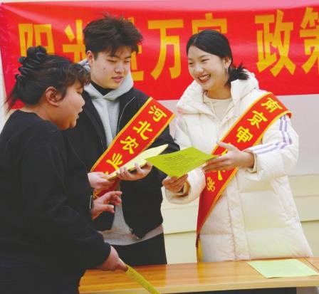 日前,南京審計大學學生申宇熙、河北農業大學學生李銘澤聯絡部分寒假回邢大學生組成志愿服務小分隊,深入農村、商場、集市、銀行、公園等地,結合自己所學專業知識,分別就食品安全以及投資理財防金融詐騙等知識進行宣傳。申五亭攝