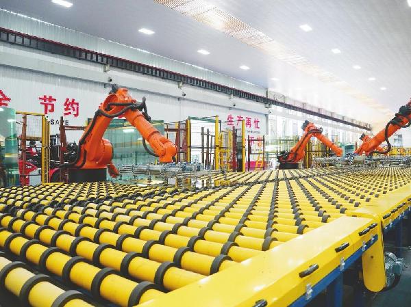 近日,在沙河經濟開發區河北德金玻璃有限公司車間,一排排機械手輕盈翻轉,精準抓取、碼放“新鮮出爐”的超薄玻璃。