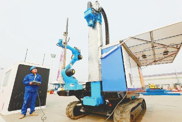 近日,在任澤區河北永明地質工程機械有限公司,工作人員正調試智能鉆進一體化鉆機。