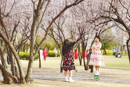 觀星臺的東側是一片茂盛的櫻花林,緊鄰達活泉湖的東南側。每每三四月間,五千多平方米的櫻花林內,花開爛漫、落英繽紛,吸引著眾多游客前去拍照留念。