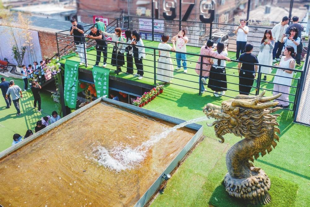 5月26日,襄都區1979邢襄創意小鎮內的飛龍泉畔,市民游客紛至沓來,或駐足細賞泉涌,或手機拍照定格美景,在初夏的微風里共赴一場泉韻之約。