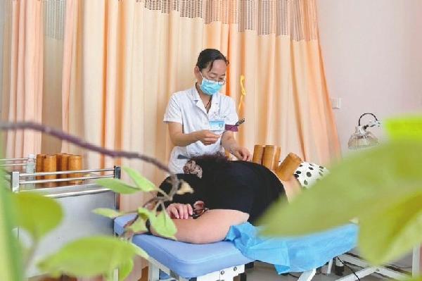 6月4日,市民在邢臺醫學院第二附屬醫院“泉城扁鵲堂”體驗火罐養生。