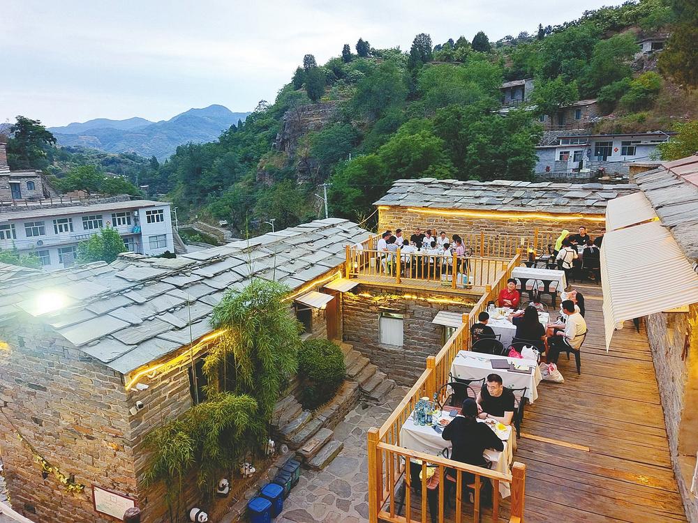 7月26日晚,游客在信都區(qū)路羅鎮(zhèn)小戈廖村的“象外高臥”民宿體驗(yàn)慢生活。