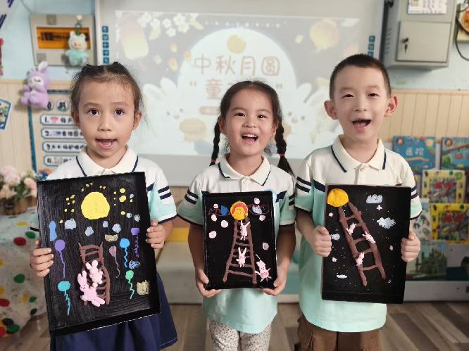 中秋的月光,照進童真的眼;童真的手,捧出團圓的心。小朋友齊動手,把一輪圓月“裝”進作品,也把一份文化“收”進童年。圓圓的月亮,長長的天梯,活潑可愛的小兔子,寄托著我們思念!愿大家年年團圓,快樂每一天。