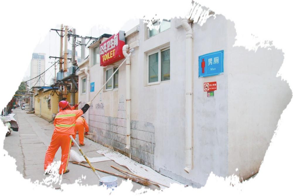 在塔林北路公廁現場,環衛工人胡維強正手持工具對外墻進行修補。“為了盡早讓市民用上更干凈、更方便的公廁,我和同事們正加班加點推進改造工作。”胡維強說。