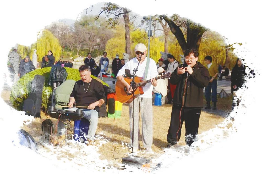本報(bào)訊初冬的午后,邢臺(tái)達(dá)活泉公園九龍柱旁,泛黃的草坪自成環(huán)形音樂廳。吉他聲起,一曲《對(duì)面的女孩看過來》的旋律從弦上流淌而出,市民們循聲而來,圍坐成自然的觀眾席。有人輕聲跟唱,有人閉目靜聽,陽(yáng)光與音符一同灑落。